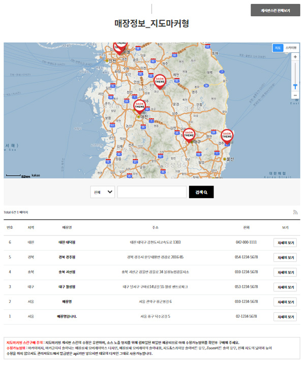 ● '매장정보' 지도에 해당지역이 마커됩니다.